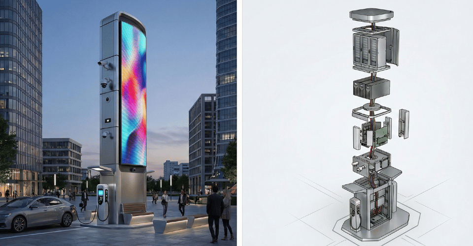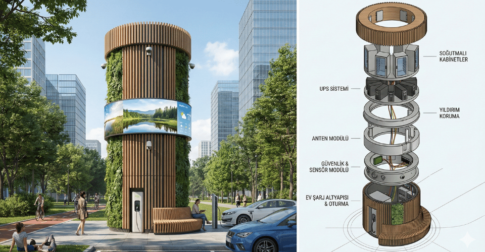 Bu kuleler sadece bir anten direği değil, aynı zamanda bir “şehir mobilyası”dır. 5G ve 6G altyapısına hazır olan kuleler, radyo ekipmanları için özel soğutmalı kabinetlere, yıldırım korumasına ve UPS (Kesintisiz Güç Kaynağı) sistemlerine sahiptir. Modüler yapısı sayesinde; güvenlik kameraları, yüz tanıma sistemleri, elektrikli araç (EV) şarj istasyonları ve LED reklam panoları (2D/3D) kuleye entegre edilebilmektedir. Bu yapı, belediyeler ve GSM operatörleri için görüntü kirliliği yaratmadan kapasite artırımı sağlayan stratejik bir çözümdür.